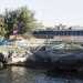 Risaliamo e continuiamo la nostra passeggiata. Sulla sinistra uno scivolo per le barche porta nuovamente sul mare. Qui il contrasto tra l’azzurro dell’acqua e i resti arrugginiti di vari oggetti è impietoso. Sulla destra si apre anche un passaggio naturale tra le rocce che permette l’accesso a una spiaggetta completamente ricoperta di alghe.