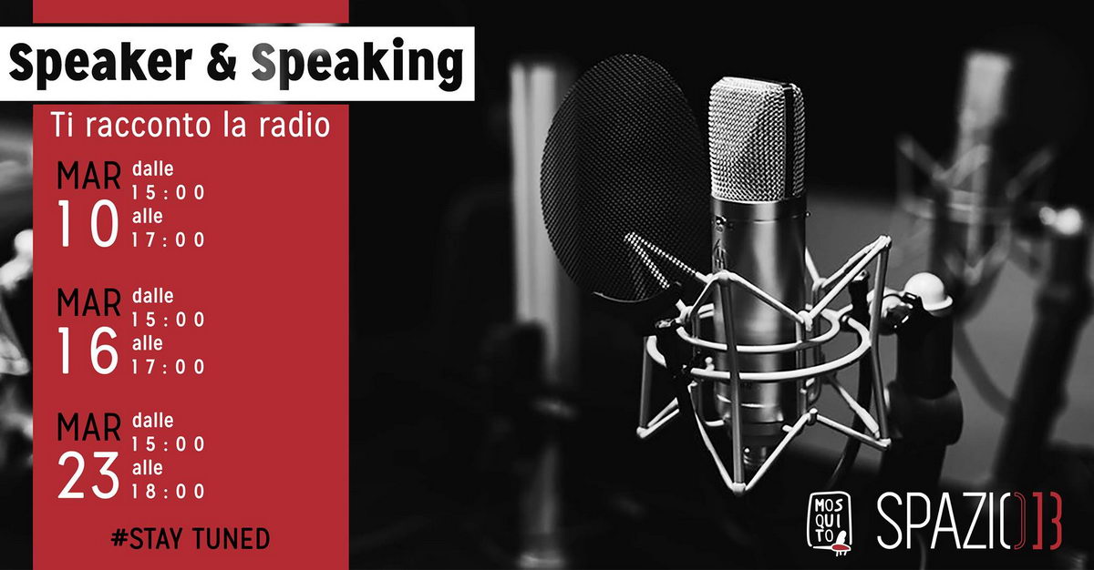 BARI - Sabato 10, venerdì 16 e venerdì 23 marzo il centro culturale Spazio 13 a Bari ospita Speaker & Speaking. Ti racconto la Radio, un ciclo di seminari in cui verranno trattati temi legati alla comunicazione radiofonica (la notizia, il linguaggio, la conduzione in duo e l'universo Internet) a tu per tu con alcuni dei migliori speaker e esponenti delle radio italiane più famose.