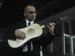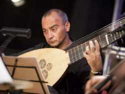 Il maestro di musica antica Giuseppe Petrella e alcuni strumenti di musica antica: la tiorba, il liuto e la chitarra barocca