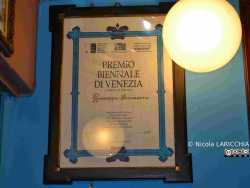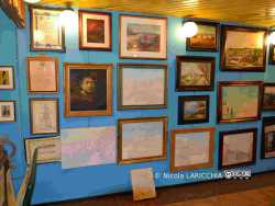 Alcuni dipinti e riconoscimenti ricevuti del pittore Giuseppe Loiacono, esposti nel suo negozio di via Celentano a Bari. (Foto di Nicola Laricchia)