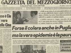 «Cara còzzeca, tu staie inguaiate»: così Eduardo De Filippo, nel 1973, iniziava la sua poesia “L’imputato”. Perché sotto processo, tra agosto e ottobre di quell’anno, ci fu proprio la cozza, ritenuta colpevole di essere all’origine dell’epidemia di colera che si diffuse nel Sud Italia, contagiando 277 persone e uccidendo 24 individui, di cui 6 baresi. A 50 anni esatti dalla comparsa della malattia, abbiamo così ricostruito la storia di quei giorni, tra paure, ricoveri, divieti e vaccini