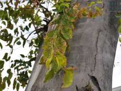 Da decenni se ne stanno ritti e ordinati lungo viale Salandra e viale Orazio Flacco, amati per le loro chiome ombreggianti, la loro maestosità e il caratteristico profumo. Parliamo degli eucalipti del quartiere Picone: simboli del rione barese che da qualche tempo appaiono però in evidente sofferenza a causa di una massiccia infestazione parassitaria. Il loro elegante fogliame, quasi argenteo, appare infatti seriamente minacciato: sulle foglie lanceolate compaiono tante piccole semisfere di un colore perlescente che varia dal bianco al crema (foto di Eva Signorile)