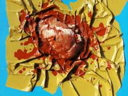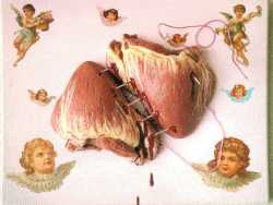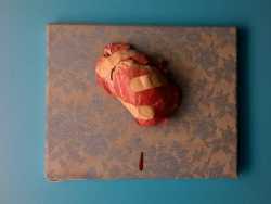 Cuori veri di maiale trafitti da viti e forcine, messi sotto vetro e chiusi ermeticamente come fossero confetture. E’ ciò che è possibile contemplare nello studio personale della 38enne barese Valentina Fino, un’artista che del cuore ha fatto il suo marchio di fabbrica. Il più importante organo umano è infatti da lei rappresentato in varie forme: rimodellato in cartapesta o dipinto su tela, sanguinante o incerottato