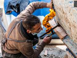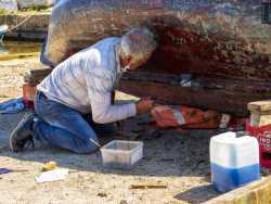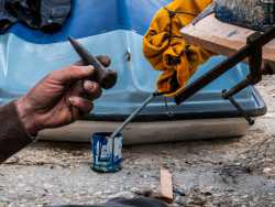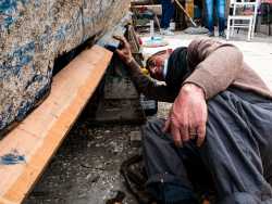 In città non li costruisce più nessuno e quelli rimasti sono “anziani” e continuamente desiderosi di attenzioni e cure. Sono i gozzi (lanze in dialetto barese) le colorate barchette in legno e a remi utilizzati dai pescatori notturni. Da sempre c’è chi è preposto alla loro riparazione: è il calafatàre (il calafato), colui che si occupa appunto della tecnica di impermeabilizzazione dei natanti. A Bari sono però sopravvissuti pochissimi artigiani specializzati in quest’arte: per scovare due “calafatari” all’opera siamo dovuti andare direttamente nel porto. Qui, a ridosso del molo Pizzoli, su una piccola banchina, si trovano infatti alcuni gozzi a riva con lo scafo scorticato (foto di Antonio Caradonna e Christian Lisco)