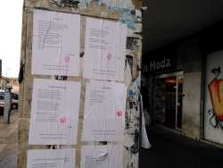 Alcune delle poesie del Movimento per l'Emancipazione della Poesia e delle Brigate Poeti Rivoluzionari attacchinate per la città di Bari