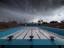 Calcinacci a terra, solai divelti, colonne portanti pericolanti. È lo “spettacolo” offerto dalla grande vasca esterna dello Stadio del Nuoto di Bari, più noto come Piscine Comunali. Costruito negli anni Settanta e riqualificato completamente per ospitare i Giochi del Mediterraneo del 1997, il complesso è il fiore all’occhiello delle infrastrutture sportive baresi. Ma oggi la sua gloriosa piscina scoperta di 50 metri, una delle più grandi del Sud Italia, è inagibile a causa dell’avanzato stato di degrado (foto di Valentina Rosati)