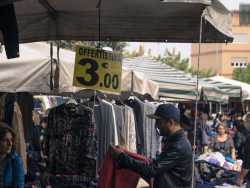 Professionisti in giacca e cravatta, studenti squattrinati, distinte signore anziane e mamme in cerca di affari a basso costo. È la variegatissima clientela che anima il mercato di abbigliamento e casalinghi di via Salvemini, appuntamento fisso e imperdibile del giovedì mattina a Bari (foto di Gennaro Gargiulo)
