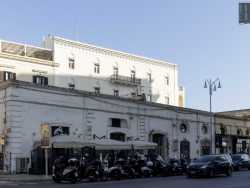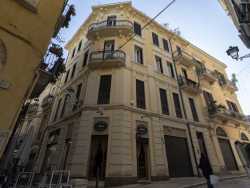 L’edificio in questione si trova al centro del quadrilatero compreso tra corso Vittorio Emanuele, piazza del Ferrarese, via Vallisa e strada San Benedetto. Un angolo della città che comprende negozi storici, osterie centenarie, edifici istituzionali e appunto questo immobile dei primi del 900 che con i suoi archi a sesto acuto e i suoi decori, contrasta con la linearità degli immobili circostanti (foto di Rafael La Perna).