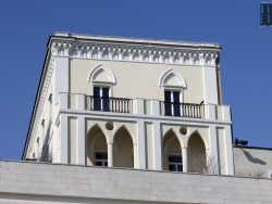 All’entrata di Bari Vecchia, a fare da spartiacque tra il murattiano e il centro storico, è presente un particolare isolato su cui svetta imperioso un elegante palazzo neogotico raggiungibile unicamente percorrendo una scalinata dal nome romantico: Salita Miramare.