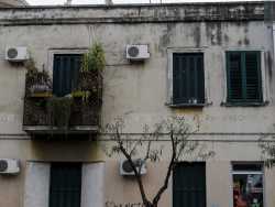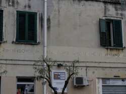 La frase che si trova sulla facciata di una bassa palazzina di viale Ennio, a Bari. La scritta recita: "Quei popoli che un giorno, privi di volontà, si rinchiudono in casa, sono quelli che si avviano alla morte". Si tratta di una frase pronunciata da Benito Mussolini durante il Congresso dell’ 8 novembre 1921 al Teatro Augusteo di Roma, quello durante il quale fu fondato il Partito nazionale fascista (Foto di Gennaro Gargiulo)
