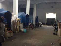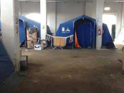 La tendopoli all'interno dell'edificio ex-Set, in via Brigata Regina, nel quartiere Libertà di Bari, che ospita 150 rifugiati