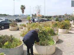 Allestire coloratissime aree verdi per le strade della città, abbellendole con rose, gerani, margherite e "miracolose" aloe. É l'insolito hobby della 75enne Maria Immacolata Argentiero, ex infermiera del Policlinico di Bari, che da vent’anni a questa parte crea piccole aiuole nei pressi di attività commerciali, convincendo i negozianti a “prestargliele” per prendersene cura (foto di Alessandro Palermo)