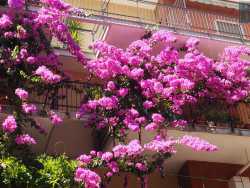 E’ lì da più di cinquant’anni, a coprire interamente un palazzo di quattro piani al n.15 di via Maranelli, una traversa di corso Alcide de Gasperi. Se si passa da questa strada è impossibile non notarla: si tratta di un’enorme bouganville viola, una rampicante che nel tempo ha “abbracciato” balconi e finestre degli orgogliosi condomini, regalando loro tanto ombra nelle assolate giornate d’estate