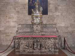 L'altare realizzato nel 1684 dall'argentiere Domenico Marinelli per la Basilica di San Nicola: su di esso è iscritta una frase in latino di cui nessuno ha mai capito il significato