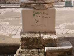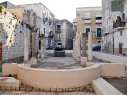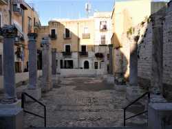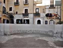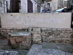 Otto colonne, un pavimento musivo e un’epigrafe su un muro: è ciò che resta della medievale Santa Maria del Buonconsiglio, uno “speciale” edificio religioso di Bari vecchia che non presenta né muri perimetrali, né tetto, né portone, ma solo ciò che è sopravvissuto alla distruzione del 1939.Si tratta quindi di un museo a cielo aperto, con tanto di mosaici e capitelli, che però paga questa sua estrema fruibilità con la quotidiana esposizione al vandalismo e all’incuria: la chiesa è di fatto utilizzata come discarica, campo di calcetto e “tela” su cui disegnare e scrivere frasi d’amore e parolacce (foto di Eva Signorile)
