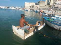 A Bisceglie un ragazzino si è costruito una barchetta da solo per andare in mare in cerca di avventura e polpi