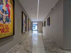 A Bitonto, nel nord barese, un complesso residenziale rappresenta una sorta di piccolo museo della “settima arte”. L’edificio, la cui forma ricorda un proiettore stilizzato, è stato infatti innalzato nel 2025 nello stesso luogo in cui tra gli anni 60 e 90 si trovava una sala cinematografica, il Super Cinema, e al suo interno accoglie una vera collezione di cimeli: locandine di vecchi film, nomi e volti di attori celebri, perfino un autentico proiettore di metà 900. Un palazzo moderno pensato quindi come omaggio a un mondo che ha fatto sognare intere generazioni e a cui è stato dato un nome che profuma di nostalgia: Amarcord (foto di Paola Grimaldi)