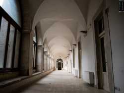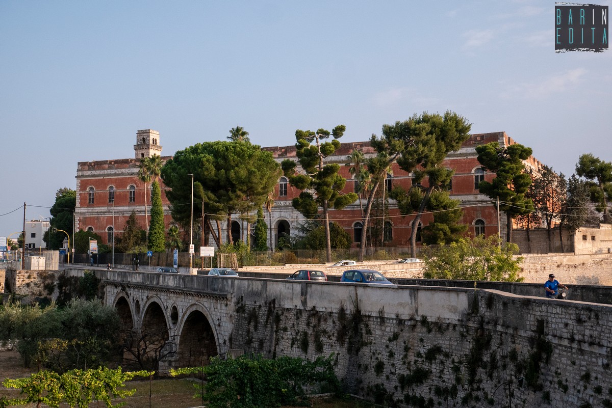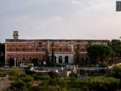 Entrando in paese è impossibile non notarlo, vista la sua mole, il colore rosso ruggine e la posizione in cui si trova, adagiato com’è sul costone di Lama Balice, a ridosso del caratteristico ponte Pescara del Carmine. È così che si presenta il Reale Orfanotrofio Maria Cristina di Savoia, edificio simbolo di Bitonto, che nel corso della sua storia ha ospitato migliaia di piccole orfane. Bimbe che venivano istruite ed educate all’interno di ambienti sorti su un convento del 1489, la cui antica struttura è ancora riconoscibile nei chiostri, nelle volte e nella sorprendente cappella. Realizzato nel 1852 dall’architetto Luigi Castellucci, l’istituto è stato attivo sino agli anni 80 del 900, retto dall’ordine delle suore Adoratrici. Oggi è adibito a centro diurno per minori, anche se molte sue stanze sono attualmente inagibili a causa di importati lavori di ristrutturazione (foto di Christian Lisco)
