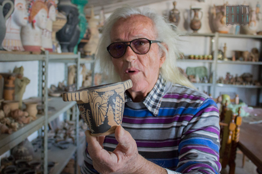«Una volta mi hanno pure denunciato perché pensavano che avessi trafugato i vasi da qualche sito archeologico: poi hanno capito che le mie erano solo copie perfette». A parlare è il 77enne canosino Antonio Caiella, un artigiano molto particolare, visto che con le sue mani riesce a realizzare delle fedeli riproduzioni di anfore, piatti, lampade e brocche antiche, in stile dauno, apulo ed ellenico (foto di Paola Setteducati)