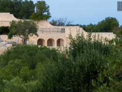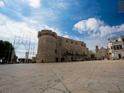 Una vera e propria copia del castello di Conversano, con tanto di torri merlate, arcate in pietra e alte mura. È ciò che è possibile ammirare nelle campagne del paese a sud-est di Bari, lì dove si erge un’enorme costruzione messa in piedi tra il 2000 e il 2008 dal marmista Francesco de Bellis (foto di Valentina Rosati)