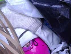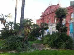 Tra i fusti contorti delle palme nane che adornano i due giardinetti proprio di fronte al teatro Petruzzelli di Bari, sono presenti da giorni giocattoli, abiti, borse, cinture, portafogli raccolti in bustoni e scatoloni