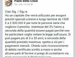 uno degli annunci-truffa di prestiti che è possibile trovare su facebook
