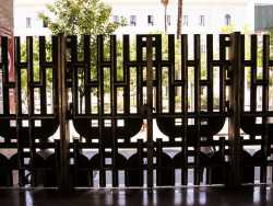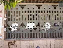 Le immagini della cancellata in bronzo realizzata nel 1972 dall'artista romano Giuseppe Capogrossi per il palazzo della facoltà di Giurisprudenza di Bari, che appare oggi completamente deturpata