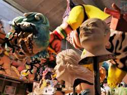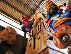 Enormi spazi zeppi di giornali e colla, dove in un tripudio di colori si respira l'aria di una tradizione secolare. Parliamo degli hangar di Putignano, tre capannoni degli anni 70 in cui vengono partoriti i carri allegorici del famoso Carnevale locale, grazie all’opera dei talentuosi maestri cartapestai. Uno storico "quartier generale" che però presto sparirà, visto che gli stabili verranno abbattuti nell'ambito di un progetto di riqualificazione urbana e i laboratori trasferiti in nuovi immobili situati in via Colombo. Siamo così andati a visitarli prima che vengano buttati giù (foto di Eva Signorile)
