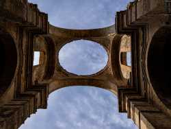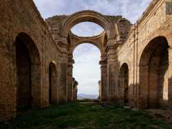 La chiamano la “Diruta”, perché da due secoli giace in rovina nel centro di Grottole, piccola cittadina lucana a sud ovest di Matera. Lei è la chiesa dei Santi Luca e Giuliano: imponente tempio cinquecentesco che, nonostante il suo abbandono, mantiene un innegabile fascino dato soprattutto dalla mancanza del tetto. Un particolare, questo, che permette al visitatore di immergersi in un luogo dove antiche colonne e arcate lasciano spazio all’azzurro del cielo, creando uno scenario “magico” (foto di Valentina Rosati)