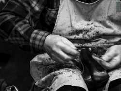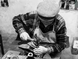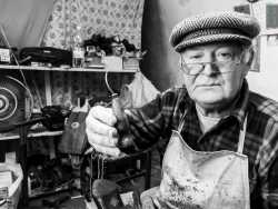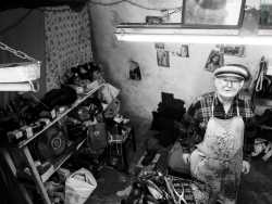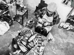 La pittoresca bottega di Antonio Di Grumo a Grumo Appula: il 68enne è uno degli ultimi calzolai "classici" rimasti in circolazione, di quelli cioè che riparano scarpe con arnesi tradizionali in luoghi di lavoro dove il tempo sembra essersi fermato (foto di Gennaro Gargiulo)
