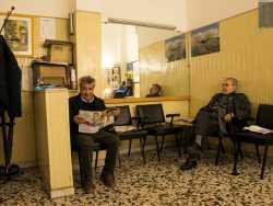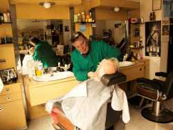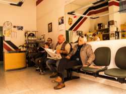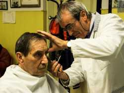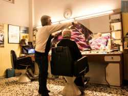 I pochi barbieri vecchio stampo rimasti a Bari. Continuano invece a tagliare i capelli in locali retrò, su antiche poltrone in ferro arrugginito e usando ristretti lavandini e specchi, trasformando il proprio negozio nel luogo in cui vecchi clienti si ritrovano per fare due chiacchiere e informarsi sulle ultime notizie del quartiere (Foto di Katia Moro)