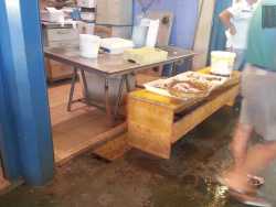 Ogni esercente del mercato di Santa Scolastica di Bari ha a disposizione un canale sgocciolatoio prospiciente il bancone della merce in vendita, canale che è coperto da 5-6 caditoie di ghisa. Ebbene, i commercianti sono costretti ogni giorno a smontare le pesanti grate e conservarle nel proprio box. Il motivo? Gliele rubano