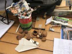 Fischietti fatti con i gusci di noci, nocciole utilizzate a mo’ di biglie, trottole di legno, aeroplanini di carta: sono i “giochi di una volta”, quelli con cui si dilettavano i nostri nonni quand’erano bambini. Ad Altamura c'è Angelo Milano, un 70enne che passa il proprio tempo a mostrare ai ragazzini come ci si divertiva decenni fa (foto di Federica Calabrese)
