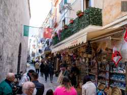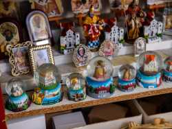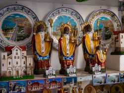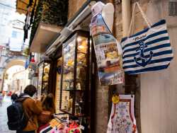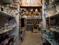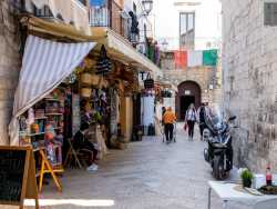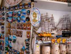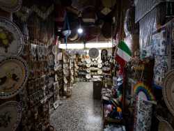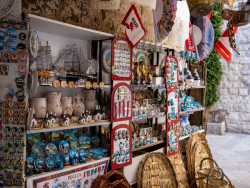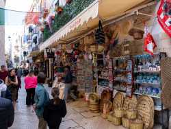 Sono i negozietti di souvenir di via delle Crociate, stretta e pittoresca viuzza del centro storico di Bari che collega la Basilica alla Cattedrale. È proprio qui, in sequenza uno dietro l’altro, che si trovano questi piccoli esercizi commerciali dove è possibile acquistare cartoline, calamite, cappellini, varie immagini del Patrono, ma anche oggetti di uso comune nella città vecchia quali cesti di vimini o teglie in terracotta (foto di Francesco De Leo)