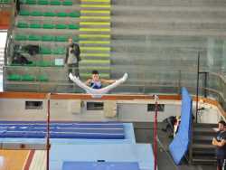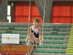 I piccoli atleti baresi Francesco Paparella e Valerio Verroca impegnati nel campionato nazionale di ginnastica artistica che si è tenuto a Livorno lo scorso 14 dicembre 2014