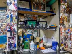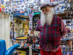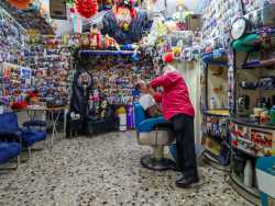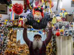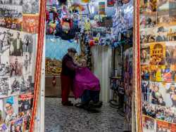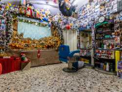 Ha una lunga barba bianca, fa il barbiere da cinquant’anni ed è conosciuto da tutti come “Babbo Natale”. È l’identikit del 71enne Domenico Santoro, che dal 1971 taglia i capelli a Putignano in un coloratissimo locale tappezzato di foto: un posto da lui trasformato in una sorta di sala divertimenti dove festeggia Halloween, Natale e Carnevale con amici e clienti. In questo modo il signore, oltre a portare gioia e allegria in paese, cerca di difendere il suo antico lavoro dall’assalto dei nuovi e moderni barber shop (foto di Rafael La Perna)