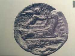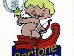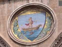 Un cherubino in piedi su una barca mentre scocca una freccia, circondato dal mare e accompagnato da un delfino. Si tratta del “Barione”, un'immagine che secondo alcuni sarebbe il primo e più antico stemma della città di Bari