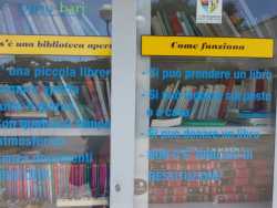Sul territorio barese inizia a diffondersi il fenomeno del book sharing, la pratica di creare delle postazioni pubbliche contenenti libri a cui tutti i cittadini hanno libero accesso.È consentito prendere e donare volumi senza alcun vincolo o limite. Tra le prime iniziative vi è la Biblioteca Aperta dell'Arena Giardino di Japigia e il progetto Giraillibro promosso dall'associazione culturale Bande rumorose.