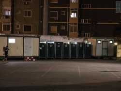 Nascosto in via di Maratona tra la piazzola di sosta dei pullman dell’Amtab e il villaggio Trieste, esiste un “non luogo”: uno spazio di 1500 metri quadri racchiuso da una dozzina di container bianchi. E’ il dormitorio pubblico del quartiere Marconi di Bari. Non l’unico in città, ma decisamente il più grande e affollato (foto di Gennaro Gargiulo)