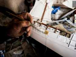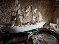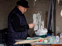 Se andate a visitare i resti della chiesa di Santa Maria del Buonconsiglio, a Bari Vecchia, noterete che al centro della parete in pietra che affianca le colonne del tempio si trova una porticina di color arancione. Quello è l’ingresso di un piccolo locale dove da 45 anni a questa parte il 70enne signor Bartolomeo Scorcia, detto “Meuccio”, costruisce bellissimi modellini di navi (foto di Valentina Rosati)