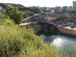 Lo si vede chiaramente navigando su Google maps: una macchia verde dai bordi irregolari e frastagliati che appare in una zona di campagna compresa tra Bari, Bitritto e Ceglie del Campo, a un paio di chilometri dallo Stadio San Nicola. Ciò di cui stiamo parlando è un lago nascosto all’interno di una cava di estrazione: un grande specchio d’acqua circondato da alte pareti rocciose e da macchia mediterranea (foto di Gennaro Gargiulo e Francesco Cocco)