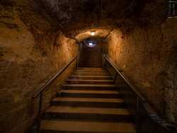 Quattrocento metri di cunicoli scavati nella roccia che funsero da riparo per migliaia di persone durante i bombardamenti della Seconda Guerra Mondiale. È la descrizione del grande rifugio antiaerei di Monopoli, un luogo posto a otto metri di profondità, al di sotto della centralissima piazza Vittorio Emanuele II (foto di Nicola Lasalandra e Valentina Rosati)