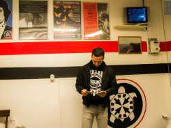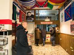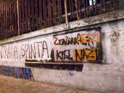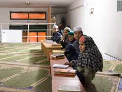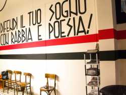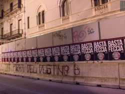 Da una parte l’aquila romana, l’elmetto della prima guerra mondiale e le massime dei vati del fascismo, dall’altra abiti orientali, teste velate e piedi scalzi su tappeti damascati per inginocchiarsi e pregare. È questo il contrasto che si è venuto a creare in via Eritrea, nel quartiere Libertà di Bari, dove sullo stesso isolato di una stretta strada incuneata tra corso Italia e via Crisanzio, trovano la loro sede sia l’associazione di estrema destra Casa Pound che la Moschea-Al-Ummah (Foto di Katia Moro)