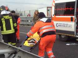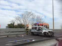 I concitati momenti dell'incidente avvenuto sulla statale 16 bis in zona Santo Spirito nord, direzione Bari. Per facilitare i soccorsi un elicottero è atterrato sulla tangenziale