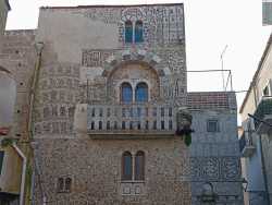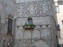 Il particolare edificio è situato nel centro storico del piccolo comune della Basilicata ed è stato decorato in questo modo da Giulio Policarpo: un muratore che alla metà degli anni 60 decise di trasformare il palazzo dove viveva in una sorta di opera d’arte.