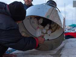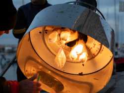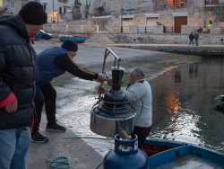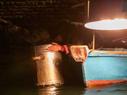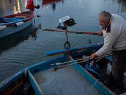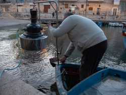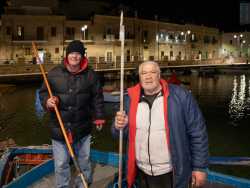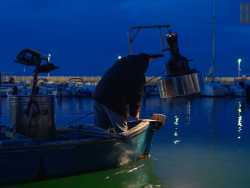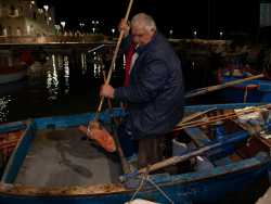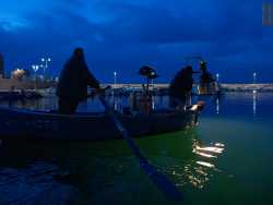Richiede oscurità, silenzio assoluto e riflessi pronti per riuscire ad infilzare la preda in pochi secondi senza l’ausilio di reti. E soprattutto è ormai patrimonio solo di sparuti lupi di mare. Stiamo parlando di un’antica tecnica di pesca, denominata “a fuoco”, usata ancora soltanto da qualche pescatore anziano. Lungo la costa barese è praticata in alcune località, tra cui Giovinazzo, a una ventina di chilometri a nord del capoluogo pugliese (foto di Paola Grimaldi)