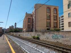 Un gigante di cemento e vetro che giace abbandonato sui binari della ferrovia, tra il quartiere Madonnella e via Oberdan. Sono i tratti distintivi dell'ex caserma Sonnino, spettrale edificio di epoca fascista che, seppur cadendo a pezzi, continua a mantenere un innegabile fascino dato dal suo inusuale colore e dalla forma che ricorda quella di un’austera fortezza (foto di Antonio Caradonna)