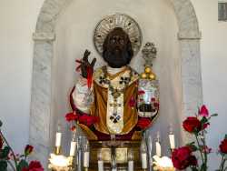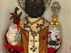 Di fronte all’ingresso del porto di Bari, sul lungomare Imperatore Augusto, si trova una piccola cappella inglobata in una torre dell’edificio dell’Autorità portuale. E’ riconoscibile da una croce, presente su una porta a vetri. Che cosa nasconde questa cappella? Una statua in legno dalla storia molto particolare, un tempo molto conosciuta e venerata dai baresi ma poi entrata nel dimenticatoio. Si tratta del busto di “San Nicola nero”, nero perché a differenza delle più diffuse raffigurazioni del santo il suo volto è molto ma molto scuro (Foto di Antonio Caradonna)