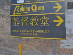 Una croce e sotto strani caratteri: a Bari c'è la Chiesa Evangelica Cinese