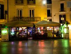 Bari Vecchia di sera è un profluvio di luci al neon, distributori di alcolici h24, scritte pubblicitarie e strade completamente occupate da gazebo. Un pugno nell’occhio insomma, in una zona di grande rilievo storico-artistico che dovrebbe fungere da biglietto da visita per turisti e visitatori. Questo nonostante l'approvazione nel 2002 di un piano particolareggiato atto a disciplinare le attività presenti nel centro storico. Siamo andati a dare un'occhiata a piazza Mercantile, il luogo più "offeso" della movida (foto di Antonio Caradonna)
